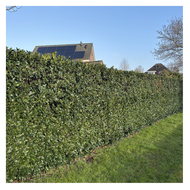Wij adviseren 4 planten per meter voor een volle laurierkers haag.