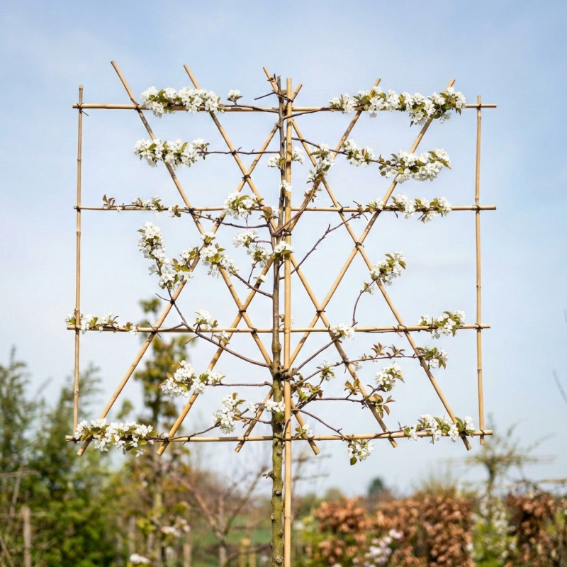 De Leisierappel heeft een rek met vier etages. Het rek is 150 x 120 cm. Tussen de etages door zijn ook takken ingebonden. Hierdoor krijgt u een mooi en vol rek geleverd.